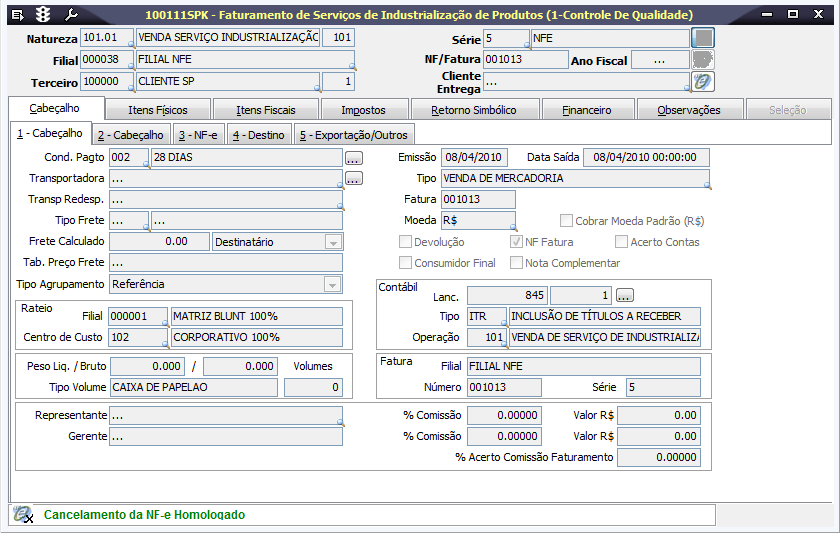 O Faturamento de Serviço é quando a sua empresa faz algum serviço para terceiros. A partir desse conceito, foi criada a tela 100111 - Faturamento de Serviços de Industrialização de Produtos, para efetuar essa operação através das opções de Ordem de Produção, Itens Fiscais e Produtos.
