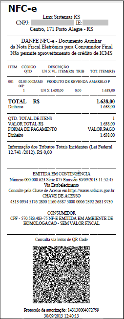 Após a emissão de uma NFC-e em Contingência, o sistema aguardará a recepção do protocolo de autorização. É imprescindível informar que as notas somente poderão ser autorizadas no prazo de 24 horas a partir do restabelecimento do serviço.