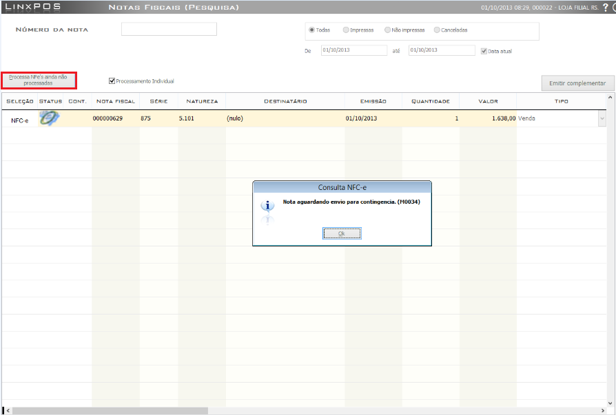 6. Aguarde o envio para contingência.