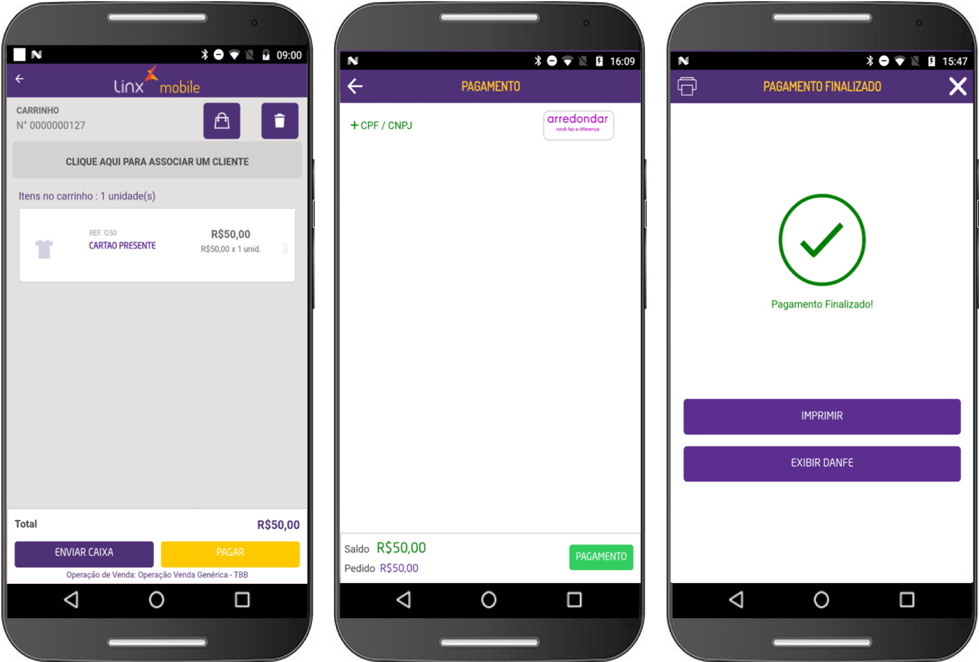 Entende-se por vale-presente ou gift card, operação de venda de serviço. Dessa forma, o Linx Mobile permite somente efetuar carga de valores nos cartões, ou seja, não será permitido efetuar vendas de produtos juntamente com os vales-presente.