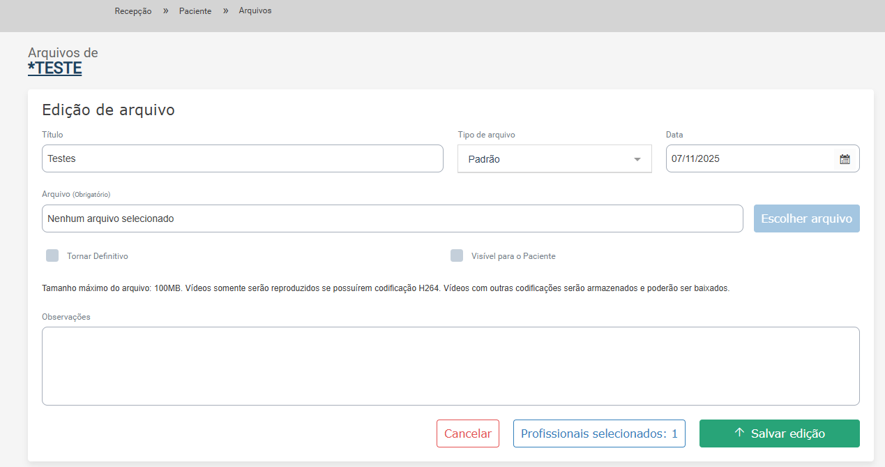 9) Em casos em que o profissional deseje excluir uma imagem, só clicar no botão.