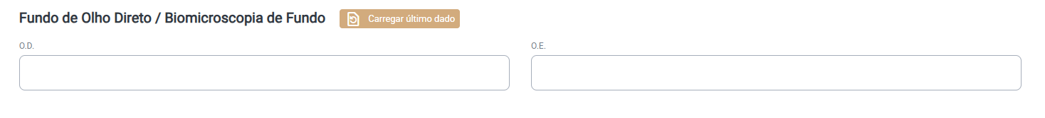 Nas seções em que há a opção “Carregar último dado”, é possível importar automaticamente os valores registrados no último atendimento do paciente. Essa funcionalidade tem como objetivo otimizar o tempo de preenchimento, reduzir retrabalho e garantir a continuidade e a consistência dos dados clínicos entre os atendimentos oftalmológicos.