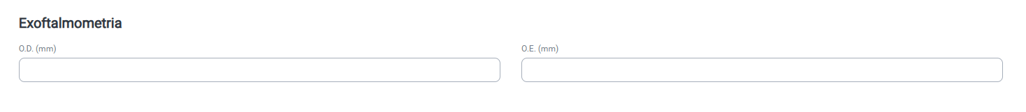 Exoftalmometria: campo para inserção dos valores obtidos na medição do grau de protrusão ocular.