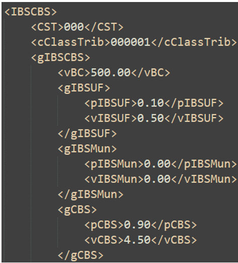 Valores IBSCBS item Valores IBSCBS totais