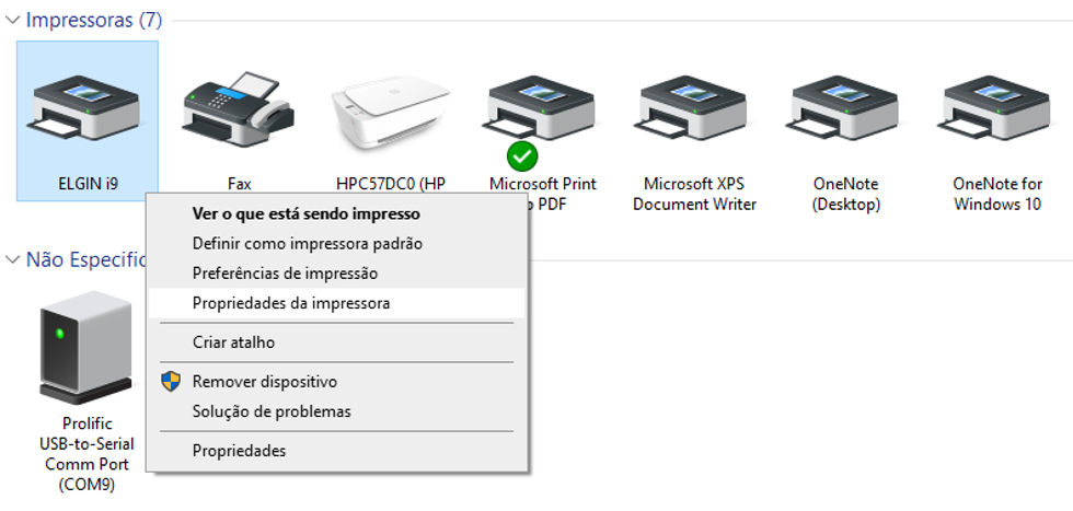 Abaixo será apresentada a configuração da impressora Elgin i9 e i8 para que seja possível trabalhar com impressão sem alocar a porta.