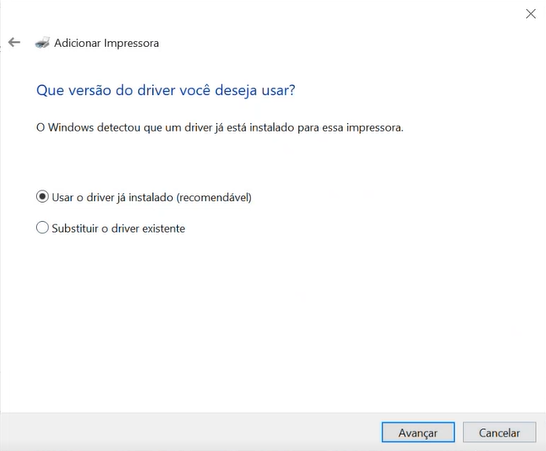 6. Agora deverá ser apontado qual a versão do driver será utilizada, neste exemplo selecionar a opção Usar o driver já instalado (recomendável):