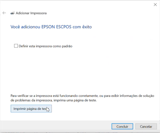 8. E imprimir a página teste. Caso seja impressa corretamente, clicar em Concluir: