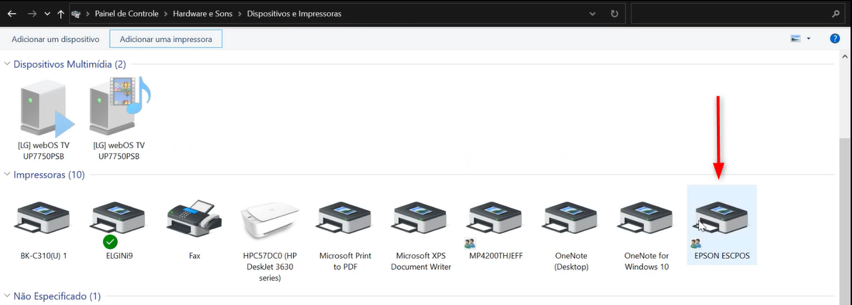 Abaixo será apresentada a configuração da impressora Epson TM-T88V, para que seja possível trabalhar com impressão sem alocar a porta.