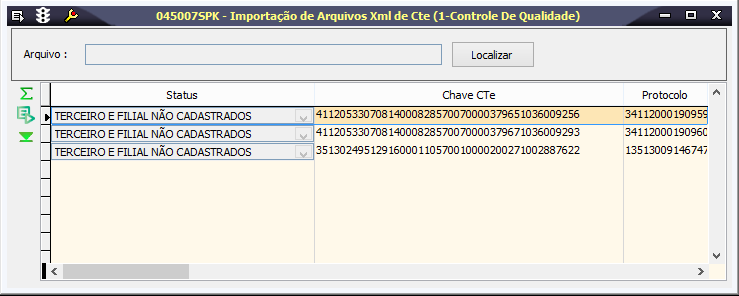 Nesta tela poderão ser importados os arquivos XML de Conhecimento de Frete Eletrônico. Conhecimento de Frete (CTRC ou CT-e) é um documento emitido e armazenado eletronicamente, com o intuito de documentar para fins fiscais, uma prestação de serviço de transporte de cargas realizada, seja ela aéreo, rodoviário, ferroviário, ou entre outros.