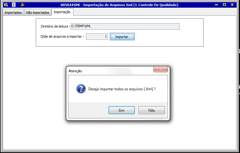 Será apresentará a mensagem: "Deseja importar todos os arquivos [XML]?". Selecione a opção Sim.