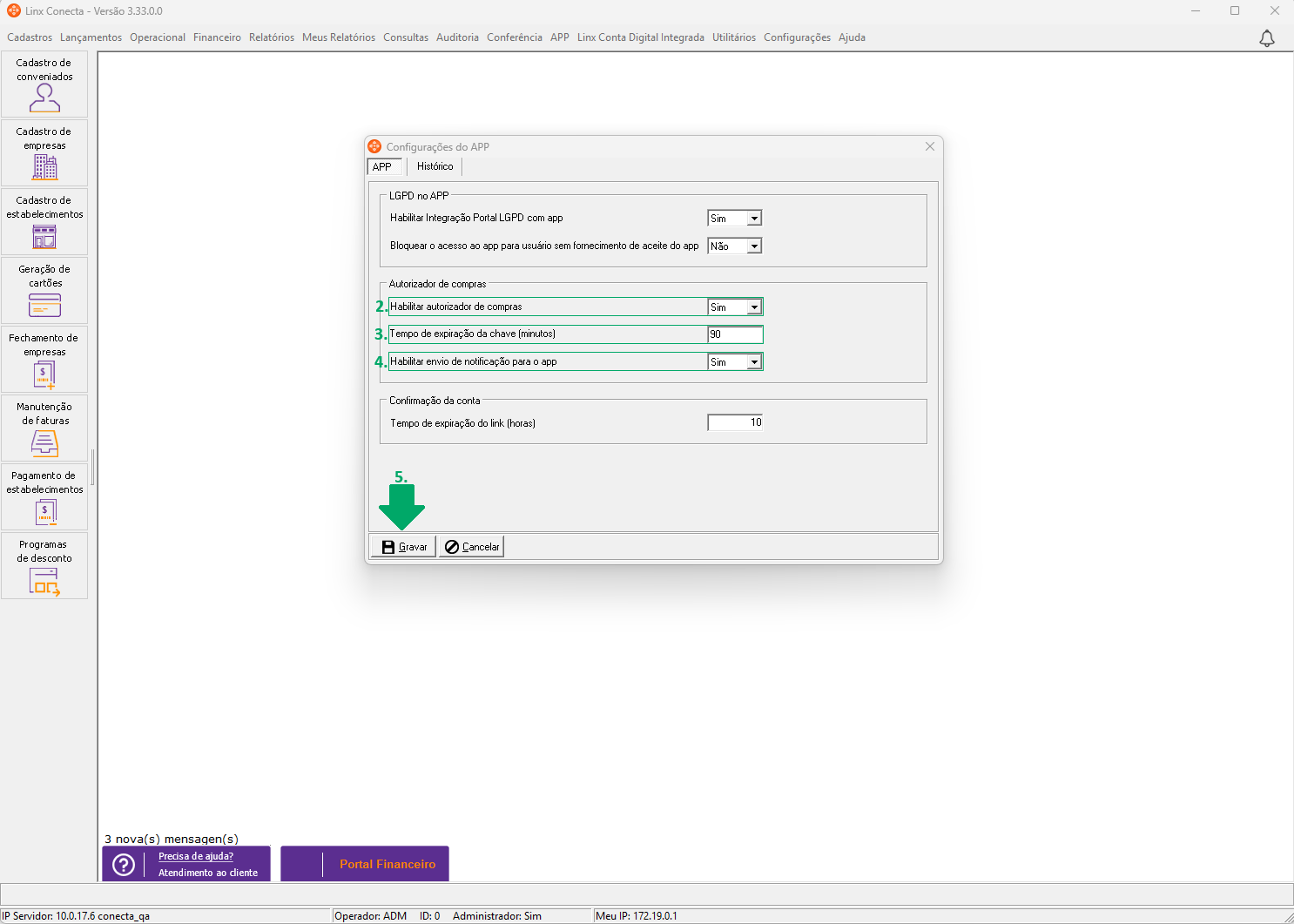 Linx Conecta - Cadastro de Empresas - Como configurar o autorizador de compras para gerar nova senha para conveniados