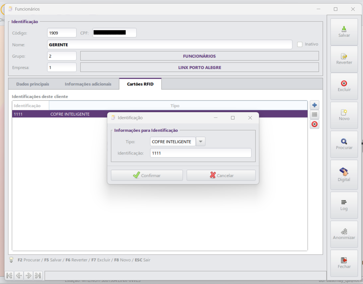 Acesse Gerencial→ Cadastros → Funcionários → aba Cartões RFID.