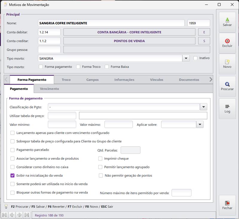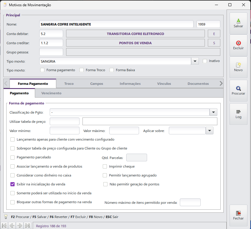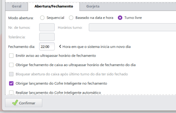 Para obrigar que o Operador de caixa realize a baixa de todas as sangrias pendentes no fechamento do caixa, habilite a flag "Obrigar lançamento do cofre inteligente no fechamento"