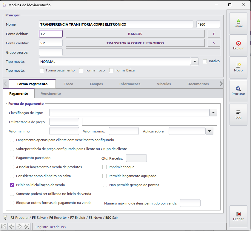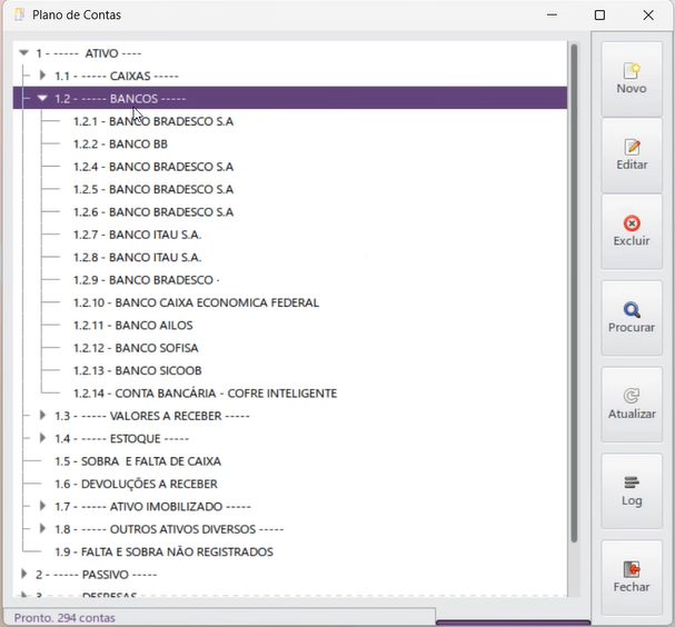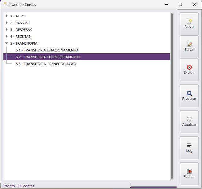 Para o funcionamento correto da rotina do Cofre Inteligente, configure no plano de contas uma conta transitória, além da conta bancária.
