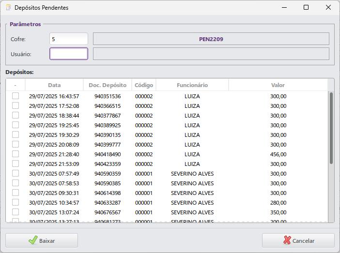Na tela, serão listados todos os depósitos pendentes do cofre inteligente.