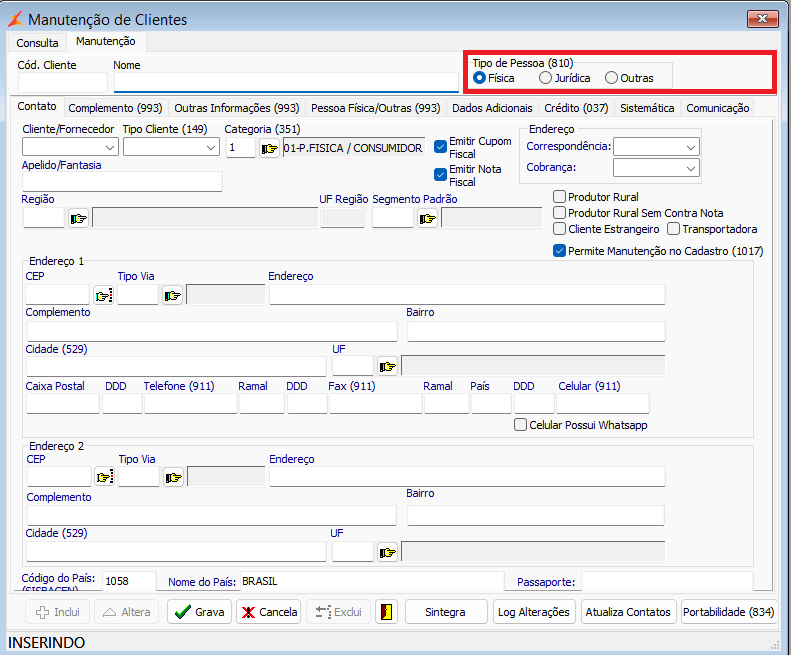 O dado exibido no campo "CNPJ / CPF" depende do cadastro do cliente proveniente do campo "Tipo de Pessoa (810)", podendo ser pessoa Jurídica ou Física.