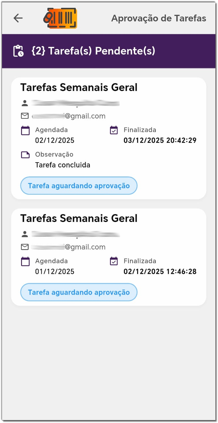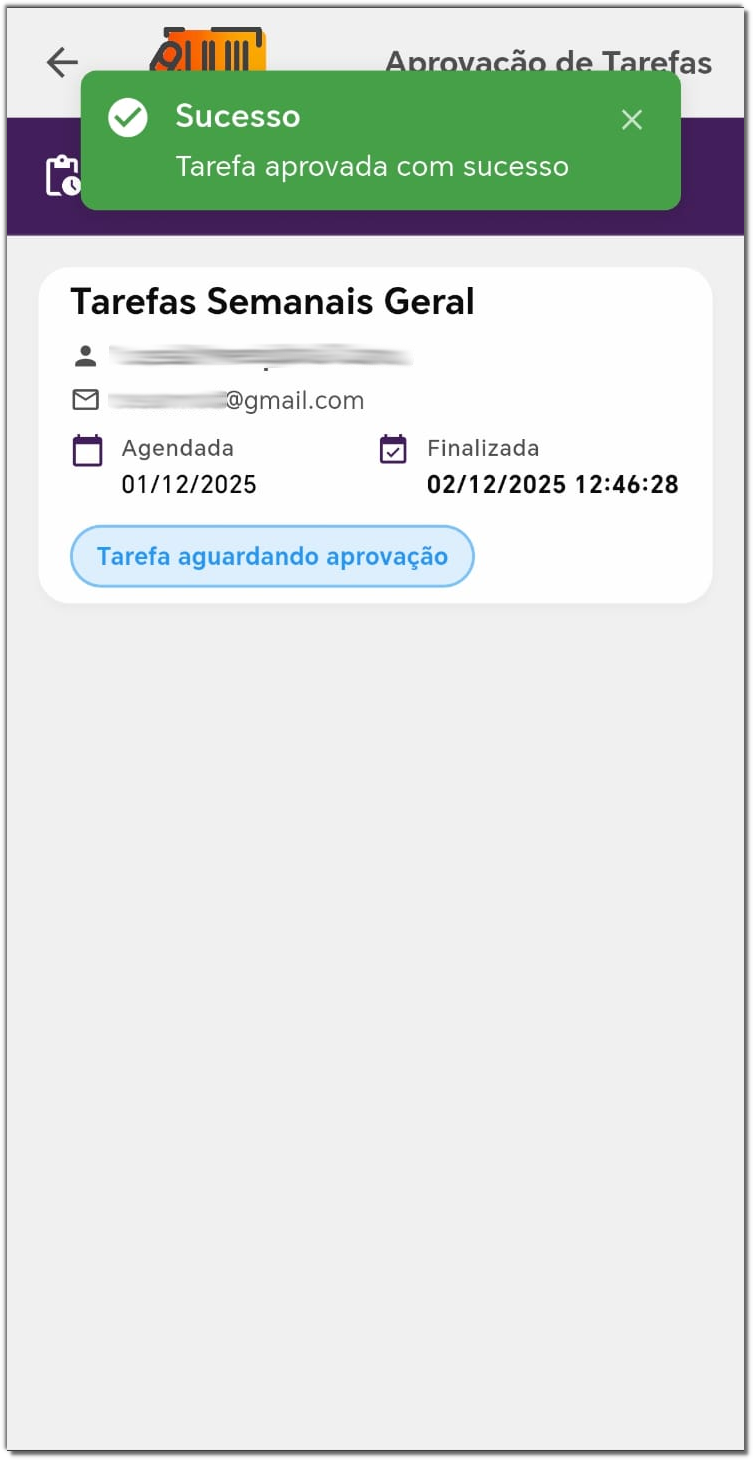 Importante: apenas tarefas com divergências aparecem para aprovação. Tarefas sem divergências são concluídas automaticamente.