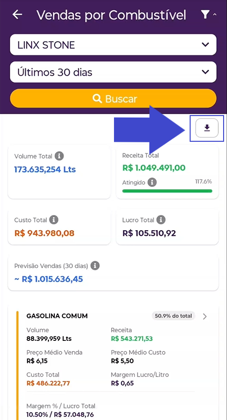 Acesse o caminho: Combustível → Vendas por Combustível.