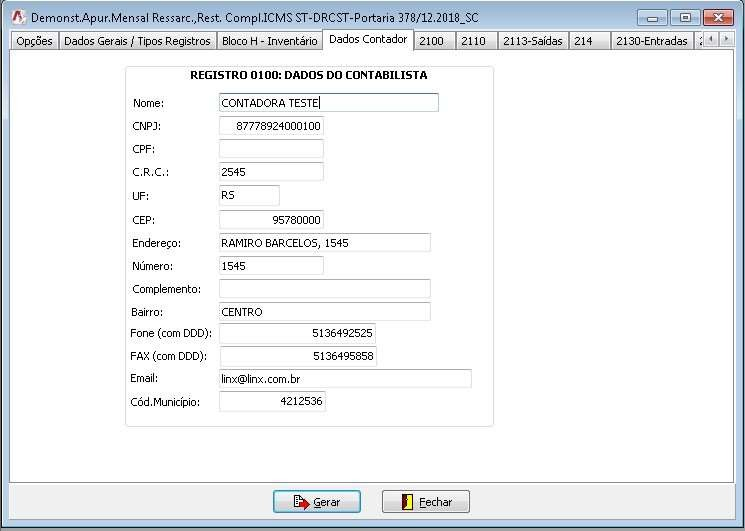 Informar os dados do Contador responsável da empresa