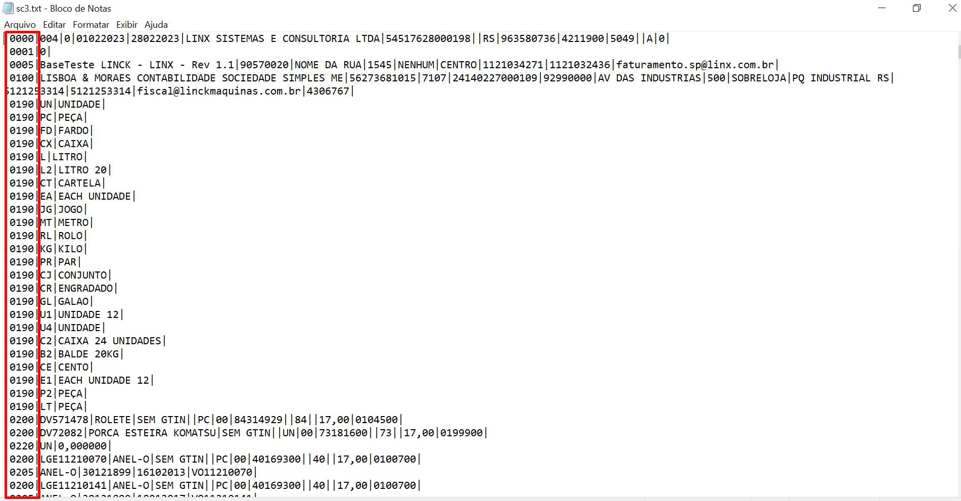 3. DADOS PARA GERAÇÃO DOS REGISTROS