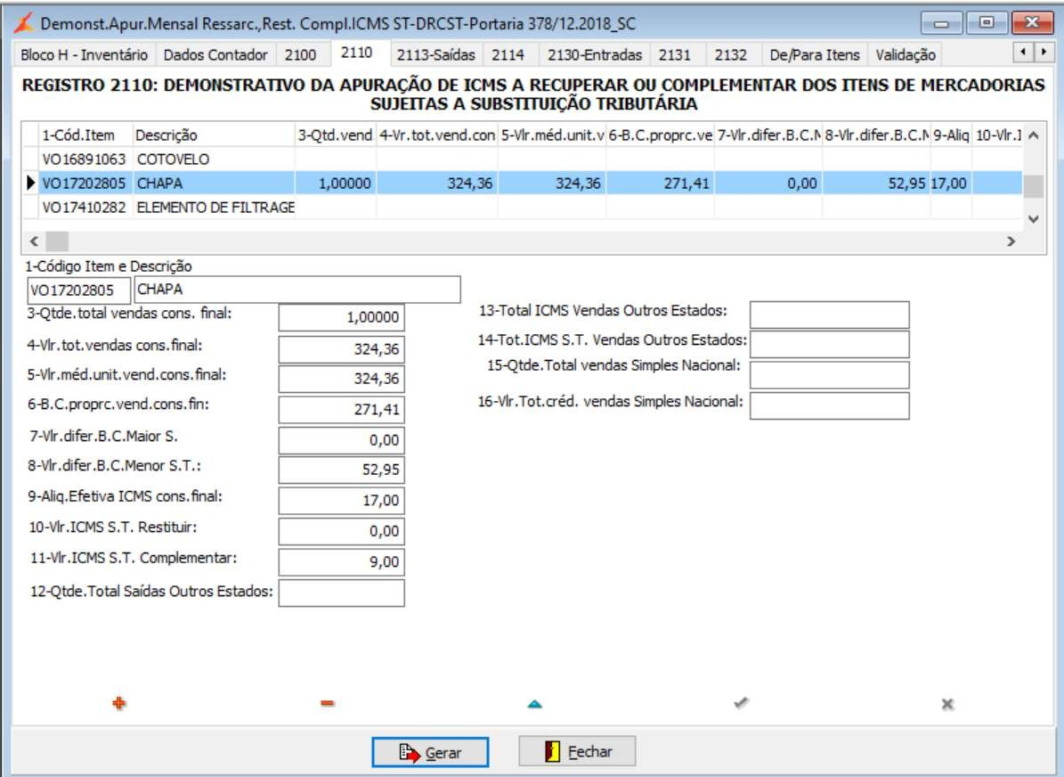2.2. REGISTRO 2110: DEMONSTRATIVO DA APURAÇÃO DE ICMS A RECUPERAR OU COMPLEMENTAR DOS ITENS DE MERCADORIAS SUJEITAS A SUBSTITUIÇÃO TRIBUTÁRIA