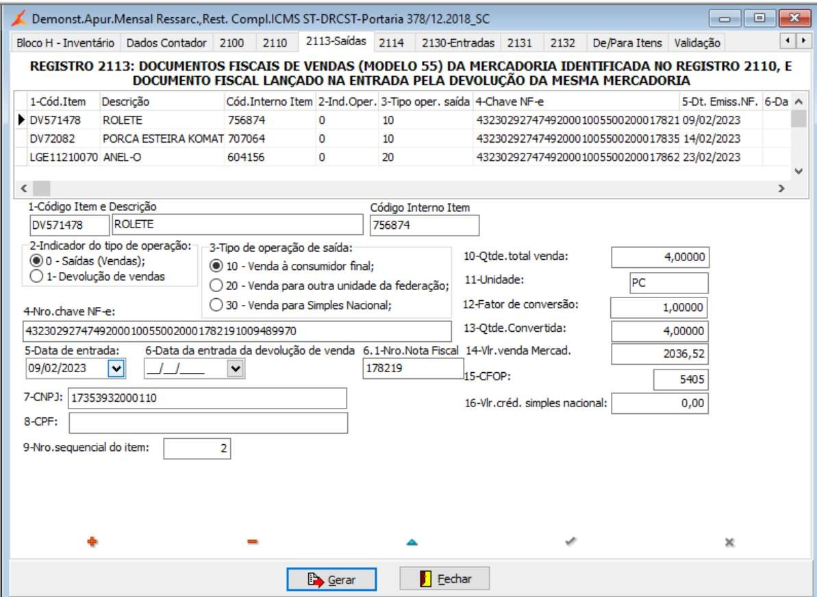 2.3. REGISTRO 2113: DOCUMENTOS FISCAIS DE VENDAS (MODELO 55) DA MERCADORIA IDENTIFICADA NO REGISTRO 2110, E DOCUMENTO FISCAL LANÇADO NA ENTRADA PELA DEVOLUÇÃO DA MESMA MERCADORIA