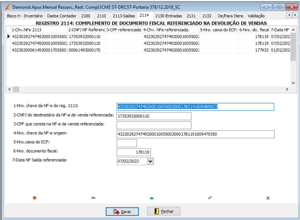 2.4. REGISTRO 2114: COMPLEMENTO DE DOCUMENTO FISCAL REFERENCIADO NA DEVOLUÇÃO DE VENDAS