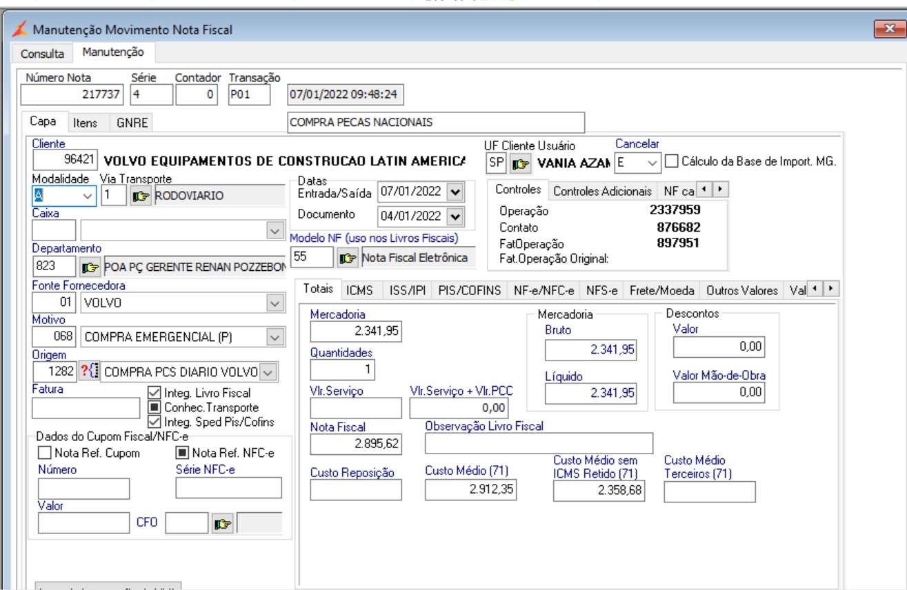 3.1. Os registros apresentados no Item 2, são gerados com os Dados das Notas Fiscais registradas na Manutenção da NF, considerando as transações selecionadas no Item 1.1 – letra D