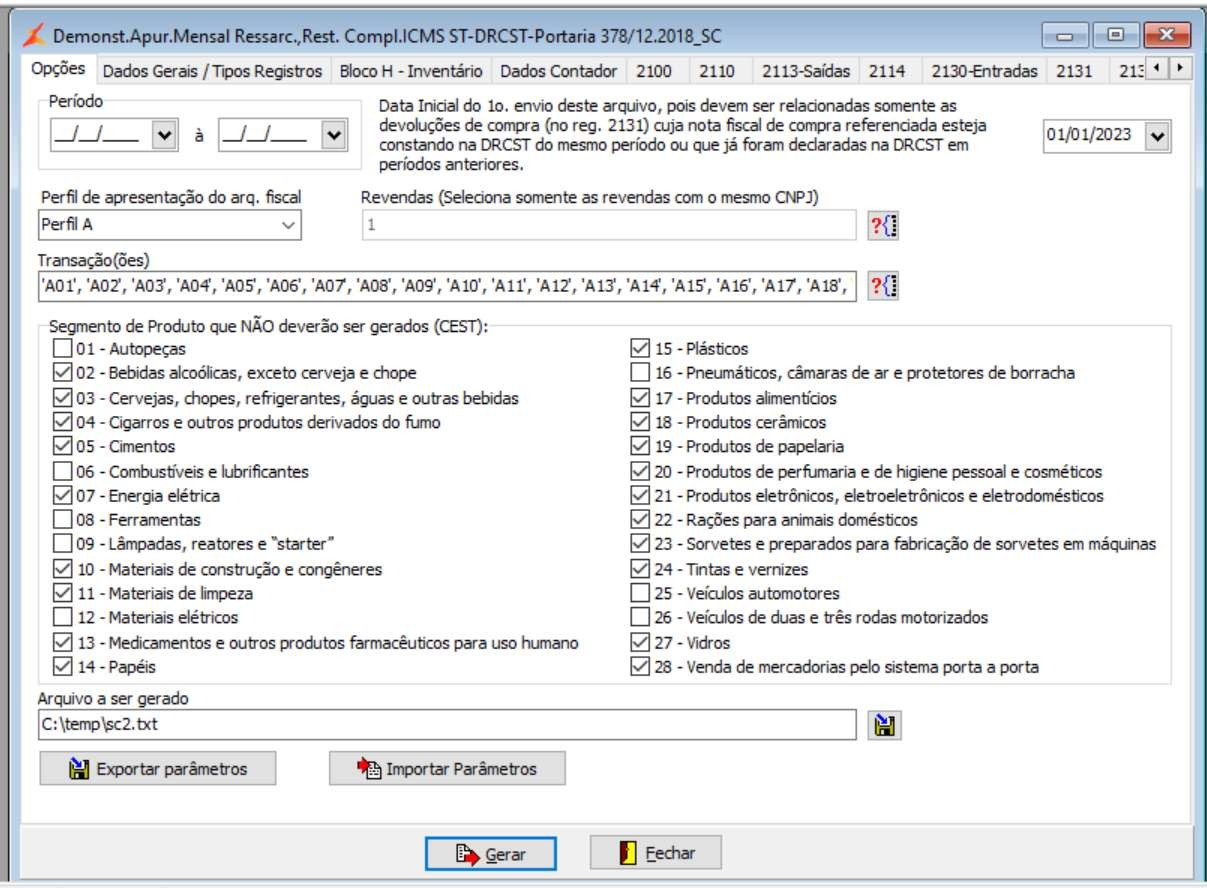 Livros Fiscais /  Relatórios Fiscais  / Geração de Arquivos / Gera Arq.Port.378/12-2018_SC-DRCST