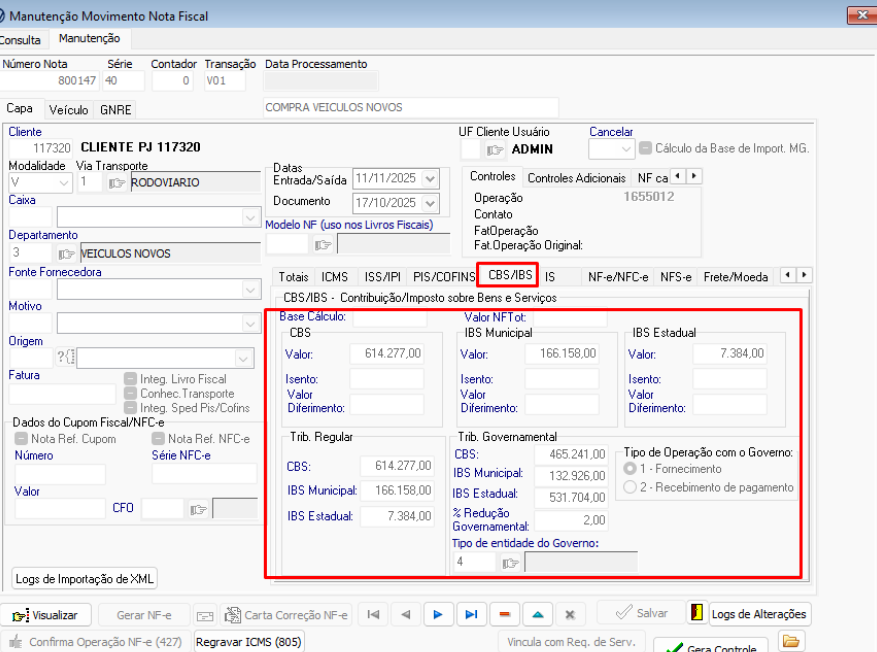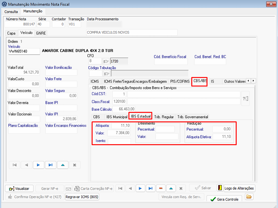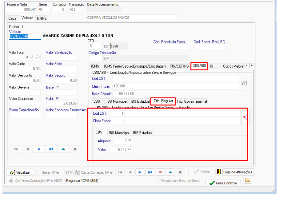 Campos referentes aos impostos IBS/CBS - Capa da Nota: