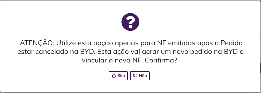 A BYD retornará um novo código de pedido (SO-...) e este será vinculado à nota fiscal