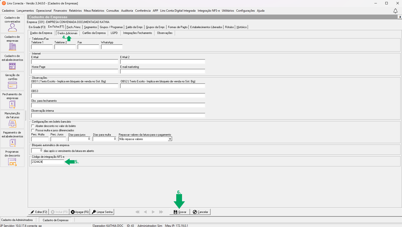 Linx Conecta - Cadastro da Administradora - Como realizar as configurações de integração
