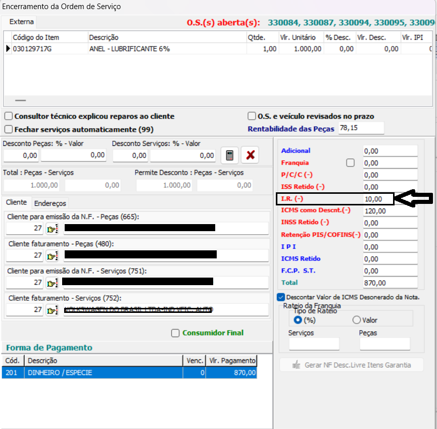 Veja como ficou o tratamento no atendimento balcão, quando este parâmetro estiver marcado: