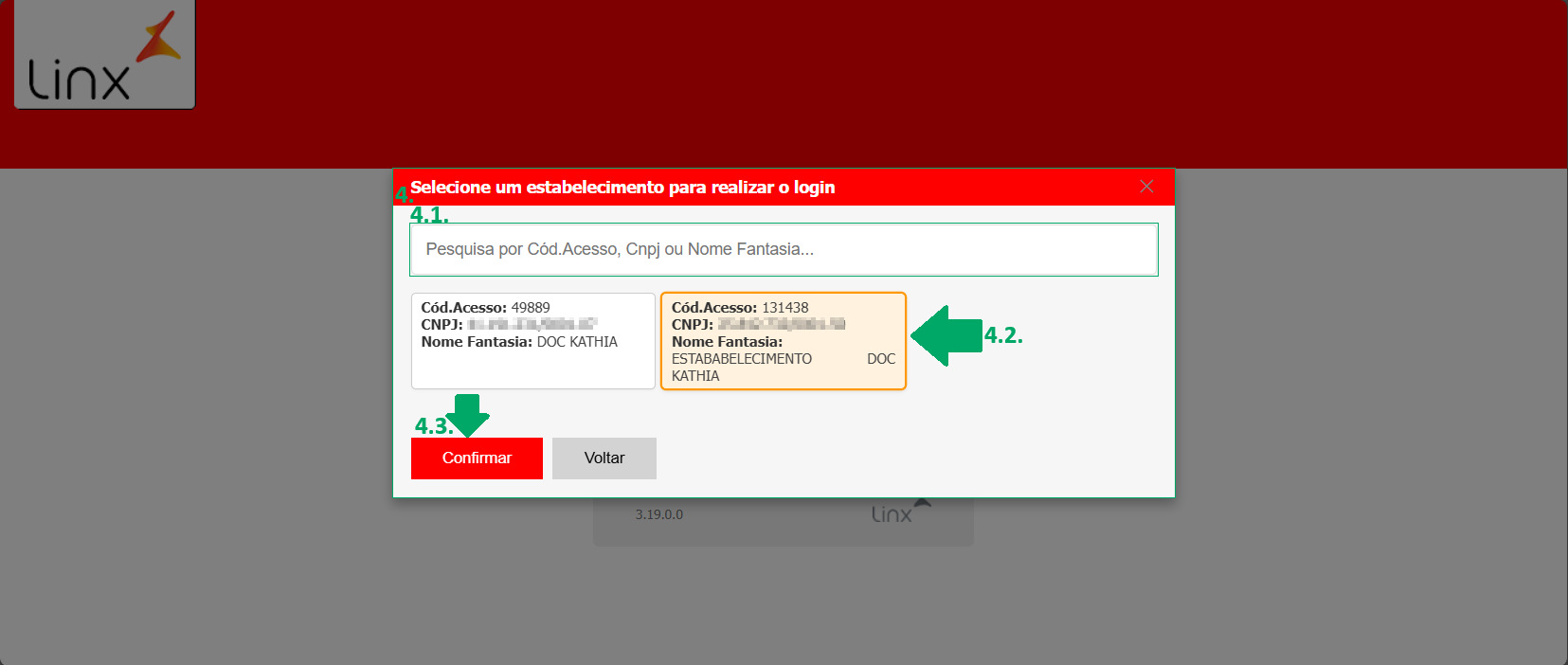 4. Será exibida a tela 'Selecione um estabelecimento para realizar o login';