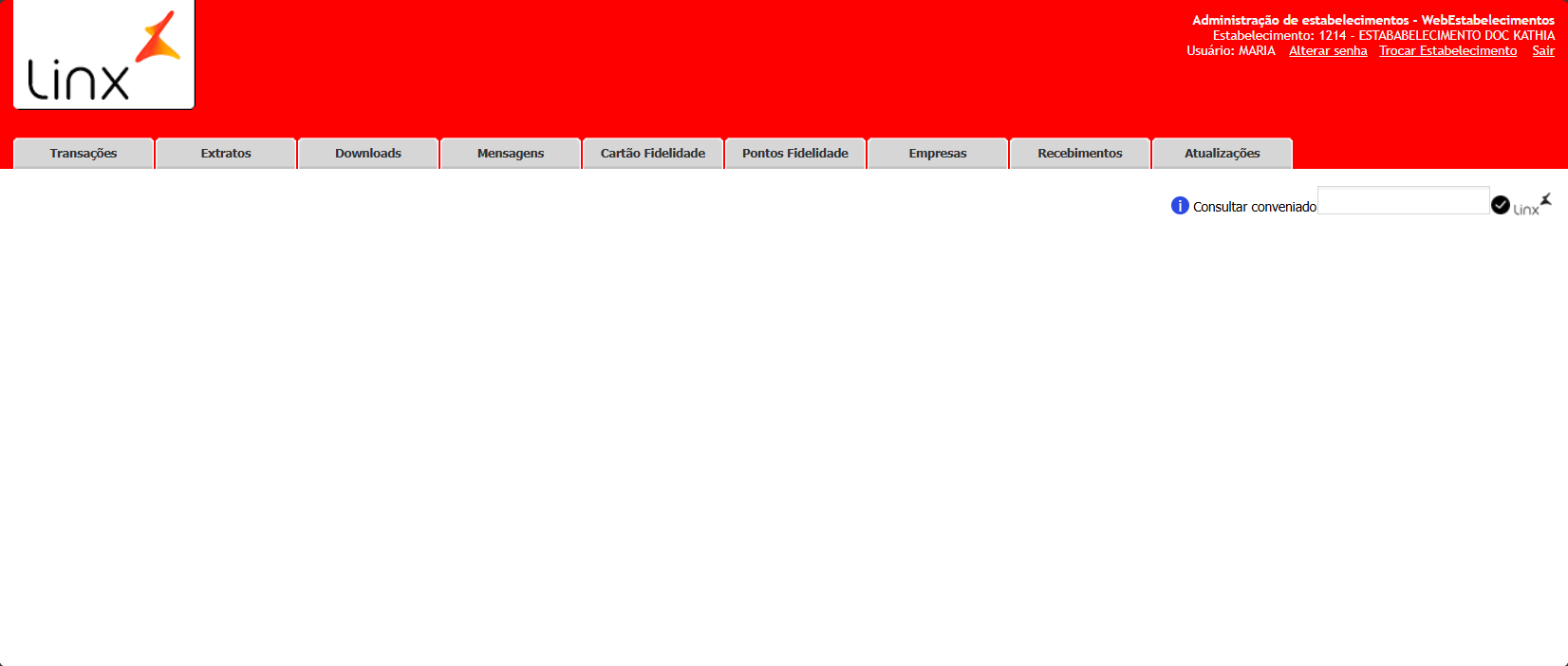 5. E será realizado o login do estabelecimento selecionado.
