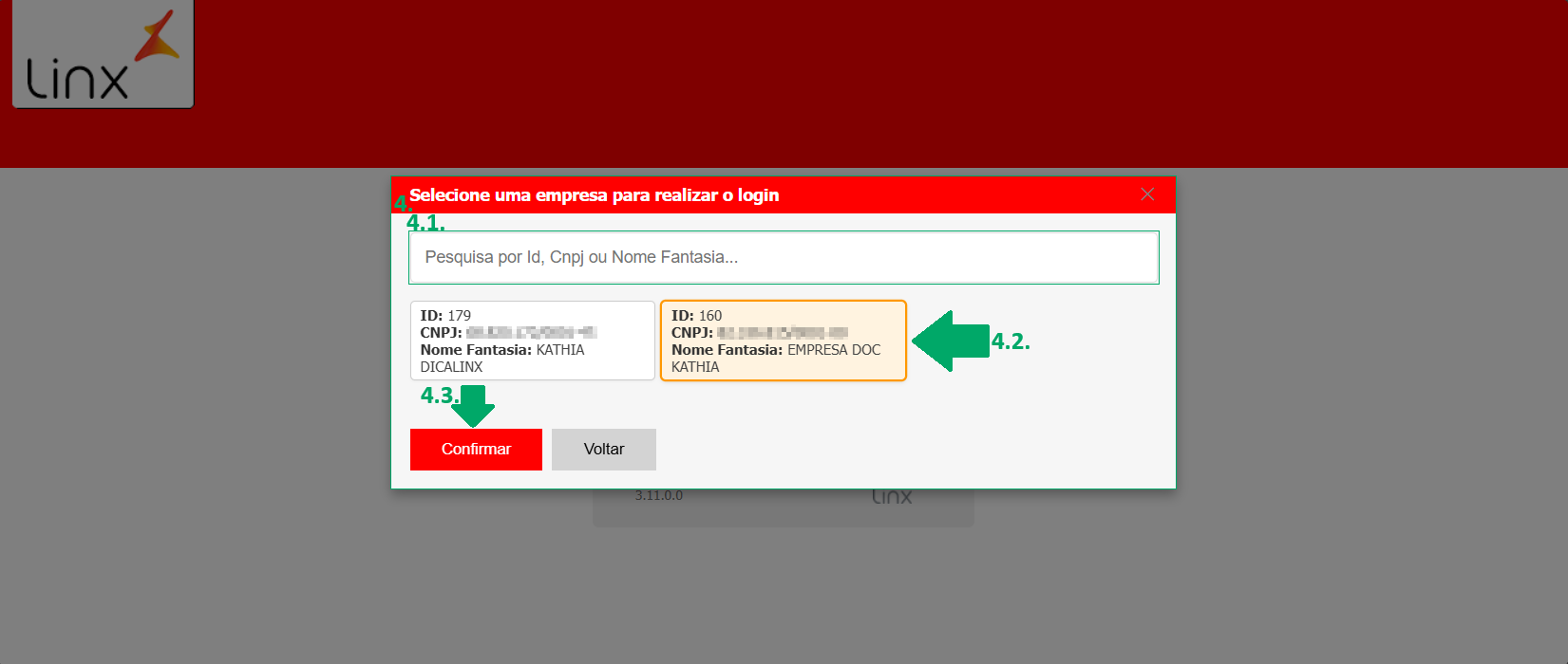 4. Será exibida a tela 'Selecione uma empresa para realizar o login';
