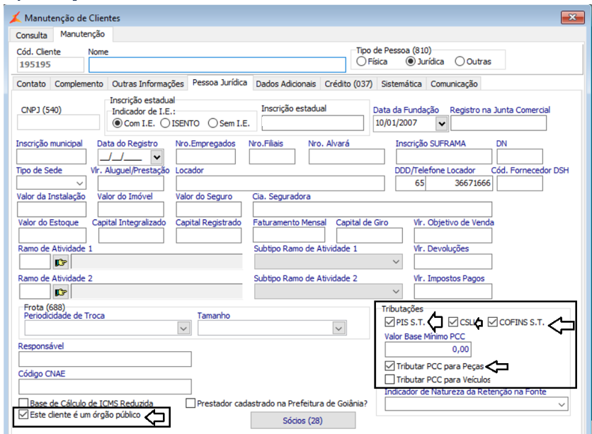 Menu Faturamento > Manutenção de Cliente > Cadastro de Cliente, na aba Pessoa Jurídica precisa ter os parâmetros abaixo configurados: