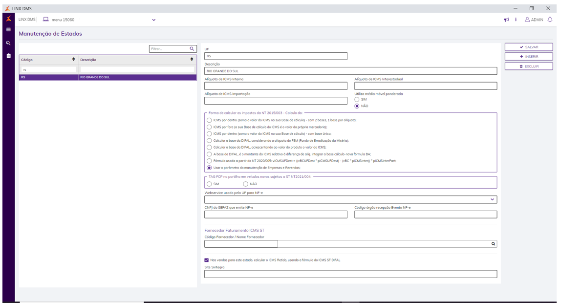 - Alíq. ICMS Retido (Interna) = 18 (ou a alíquota que o seu contador definir);