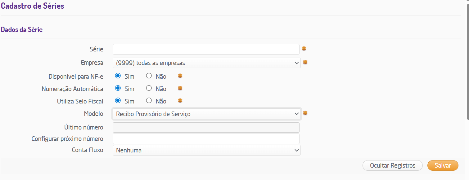 Acesse Faturamento > Cadastros Auxiliares > Série Própria >