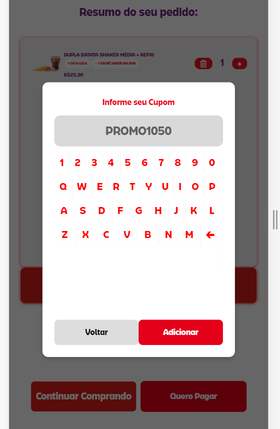 - No resumo do pedido clicar em "Adicionar Cupom"