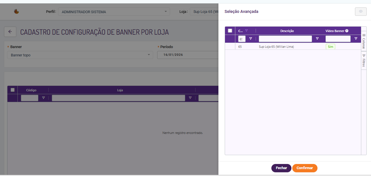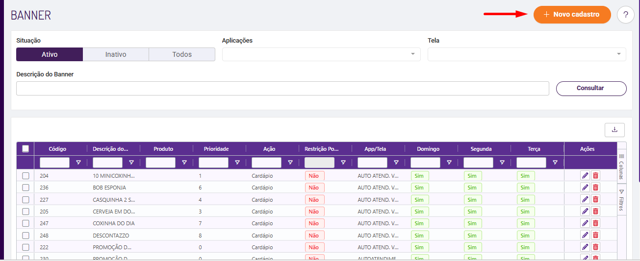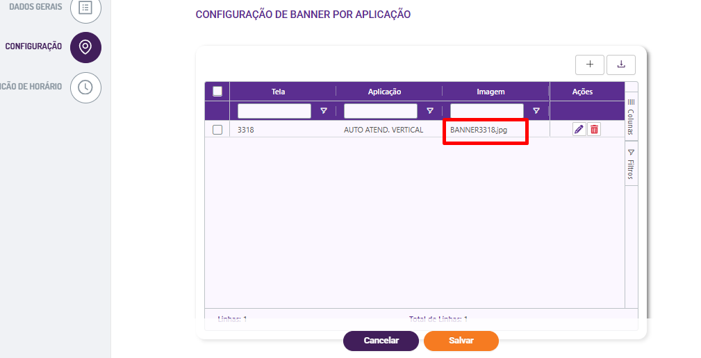 A funcionalidade permite cadastrar e exibir banners topo no Autoatendimento One, respeitando as seguintes regras: