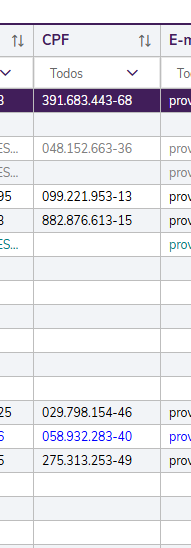 Pesquisa com outros clientes de exemplo, alguns com registro de CPF e outros sem: