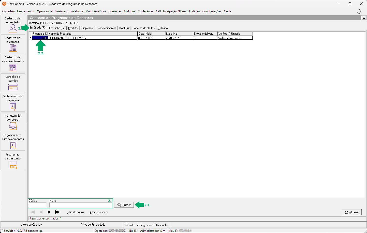 Para configurar o e.delivery em um programa de desconto já cadastrado, realize os passos a seguir: