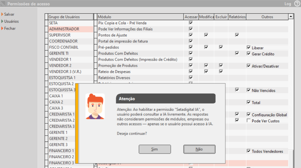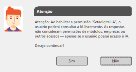 1. Mensagem de confirmação ao habilitar a permissão “Setadigital IA – Acessar”