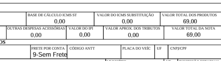 - nos totais da nota,