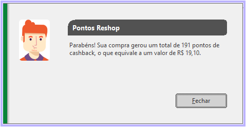 Também foi adequado a Mensagem informativa dos pontos gerados de Reshop Fidelidade no SetaERP ao final da venda, trazendo mais transparência ao processo: