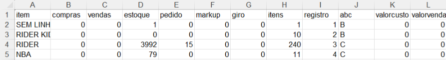- categoria “Sem Linha” para itens sem vínculo cadastrado,