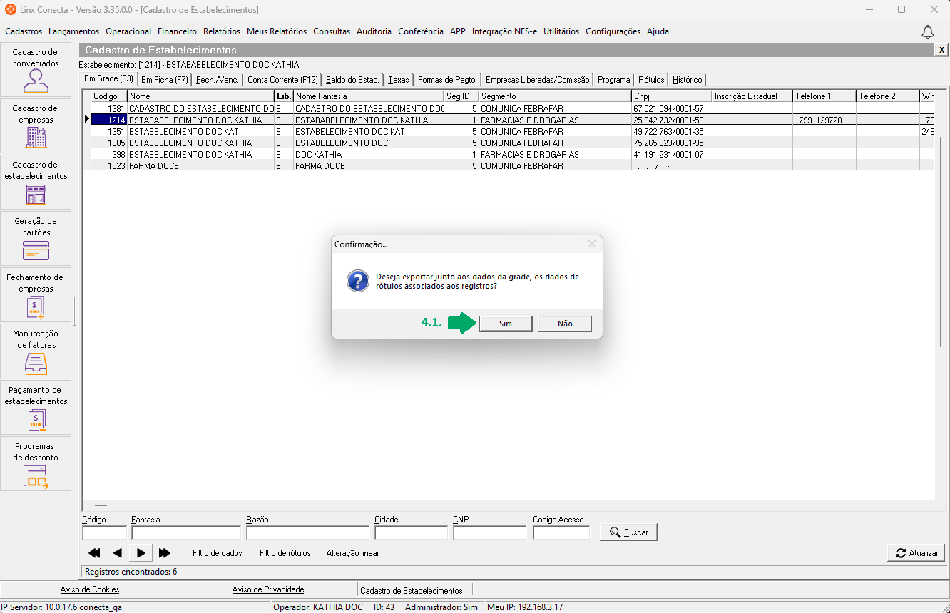 Como realizar exportações junto com os dados de rótulos associados ao registros do estabelecimentos, no módulo Conecta?
