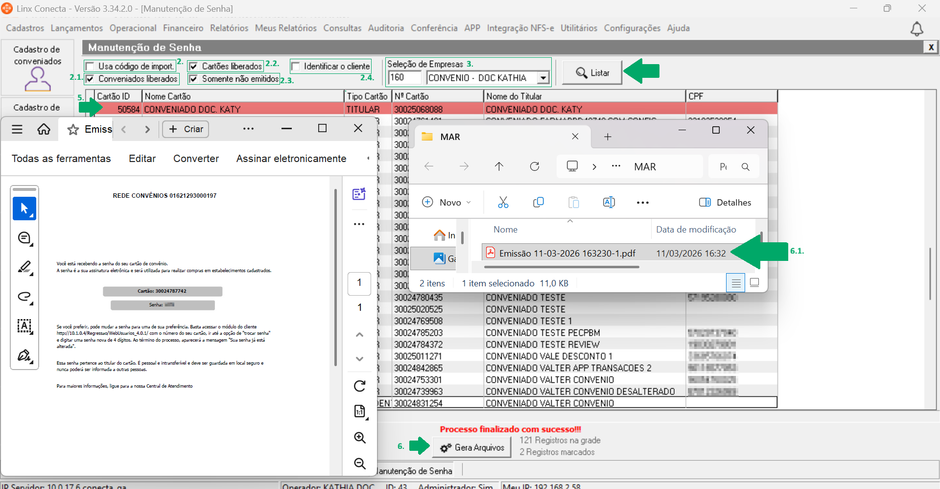 6.2. Ao abrir o arquivo em PDF terá o número do cartão e a senha.