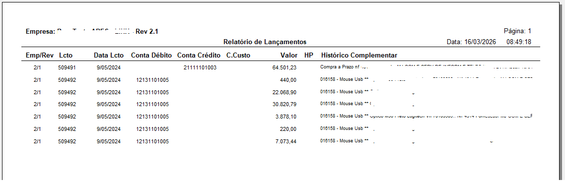 Possibilitar imprimir ou gerar arquivo das informações do lançamento contábil.